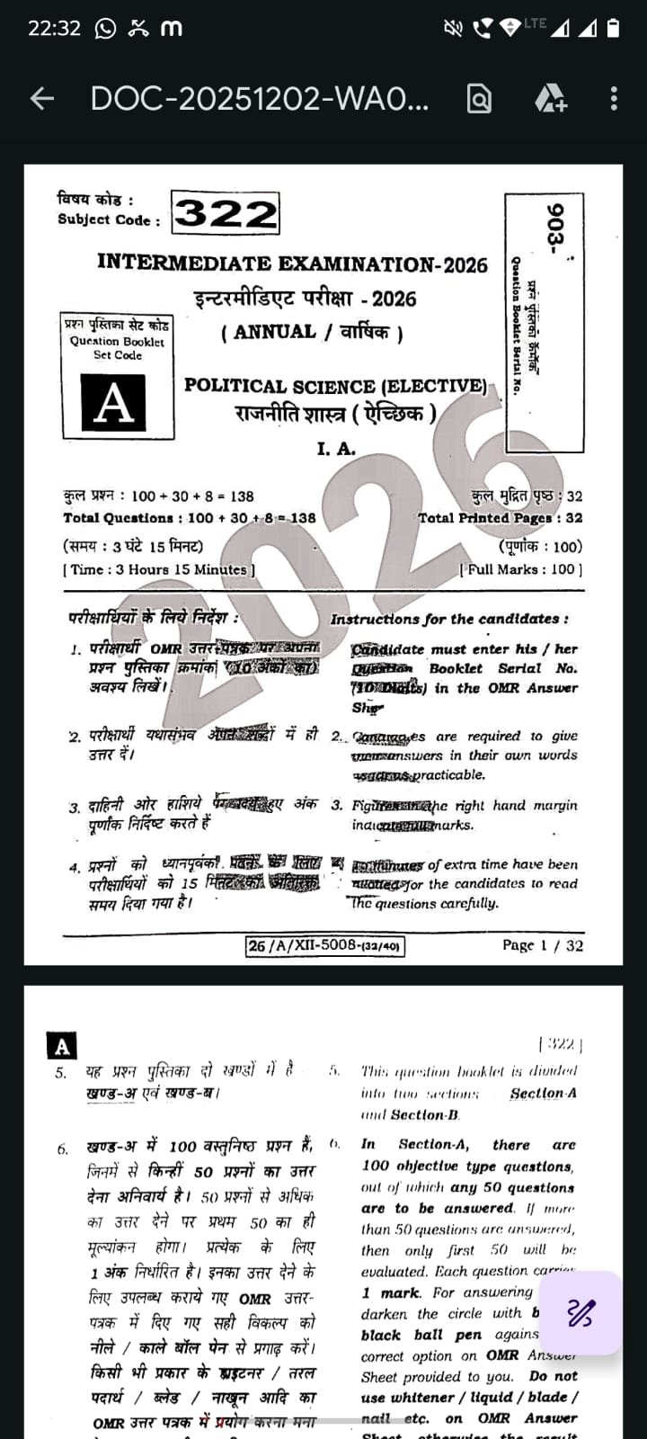 - अपनी Question Paper Set पहचानें (A–J)