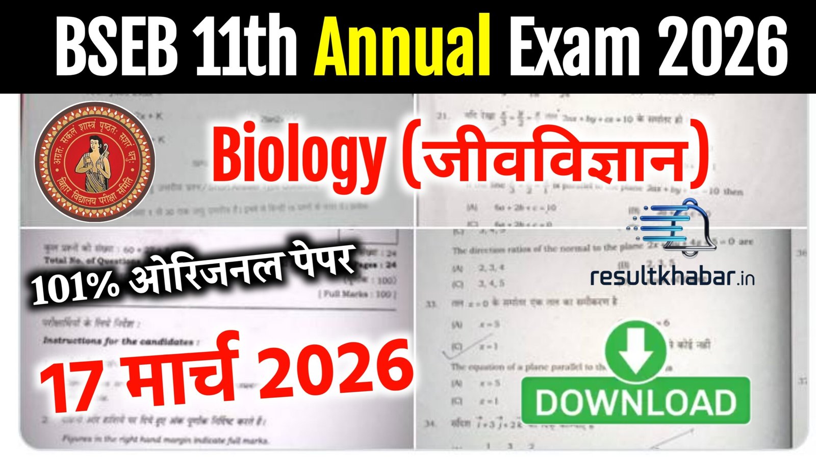 BSEB Class 11 biology Annual Exam Question Paper 2026 – हेलो बच्चों, बिहार बोर्ड के द्वारा कक्षा 11वीं जीव विज्ञान वार्षिक परीक्षा 2026 का 100% ओरिजिनल क्वेश्चन पेपर वायरल हो गया हैं। जिसका सॉल्यूशन आप इस लेख के माध्यम से Exam से पहले देख पाएंगे। इसलिए इस लेख को ध्यान पूर्वक शुरू से अंत तक पढ़े !