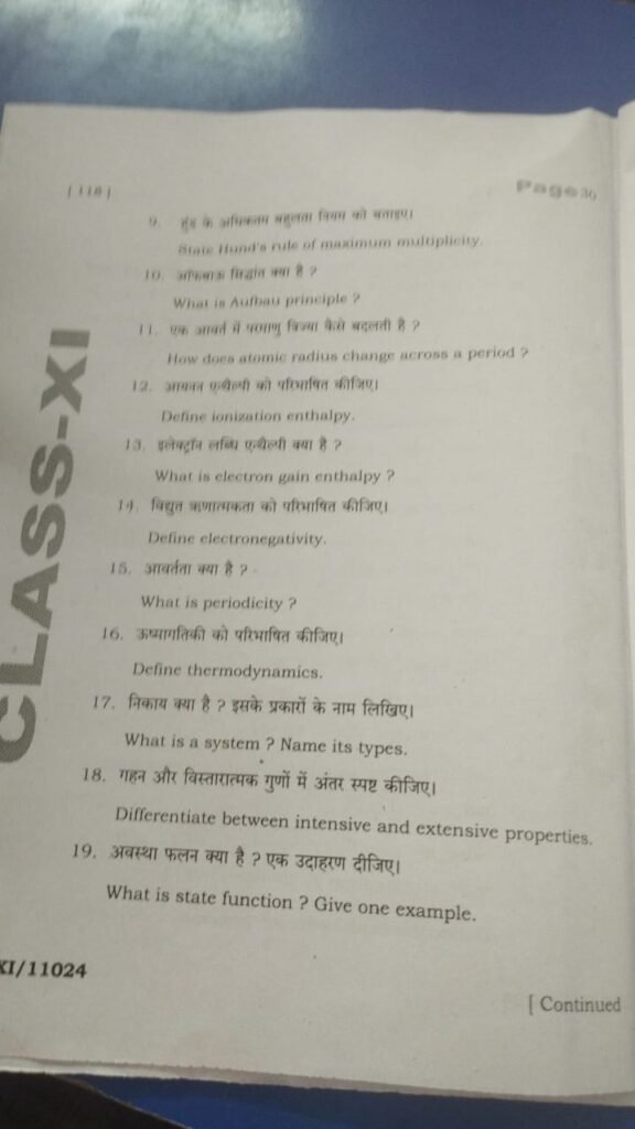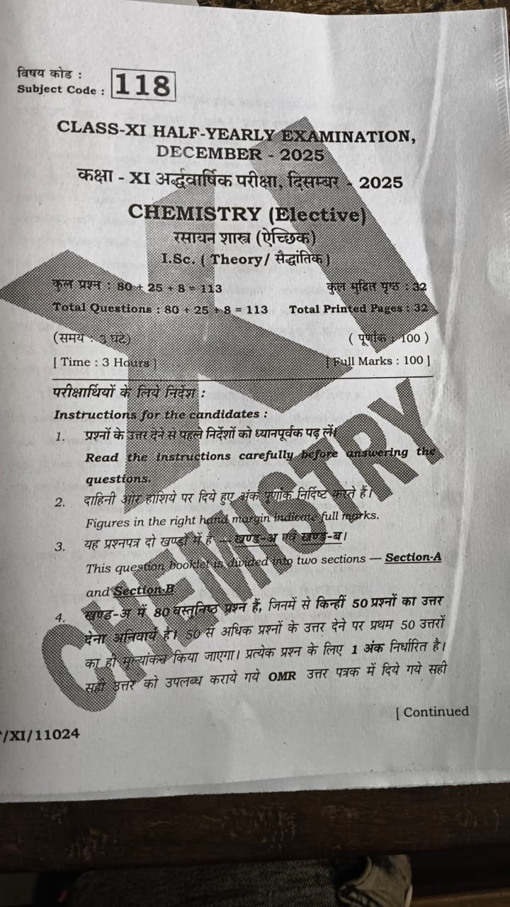 बिहार बोर्ड कक्षा 11वीं रसायन विज्ञान अर्द्धवार्षिक परीक्षा 2025 के ओरिजिनल Question Paper के 100% Correct Answer Key नीचे देख सकते हैं !