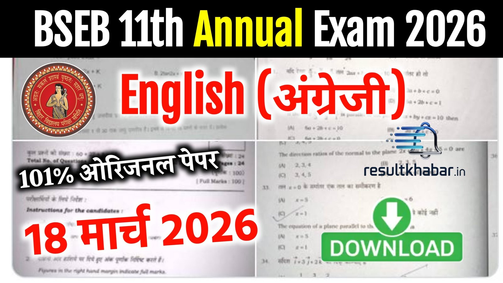 BSEB Class 11 English Annual Exam Question Paper 2026 – हेलो बच्चों, बिहार बोर्ड के द्वारा कक्षा 11वीं अंग्रेजी वार्षिक परीक्षा 2026 का 100% ओरिजिनल क्वेश्चन पेपर वायरल हो गया हैं। जिसका सॉल्यूशन आप इस लेख के माध्यम से Exam से पहले देख पाएंगे। इसलिए इस लेख को ध्यान पूर्वक शुरू से अंत तक पढ़े !
