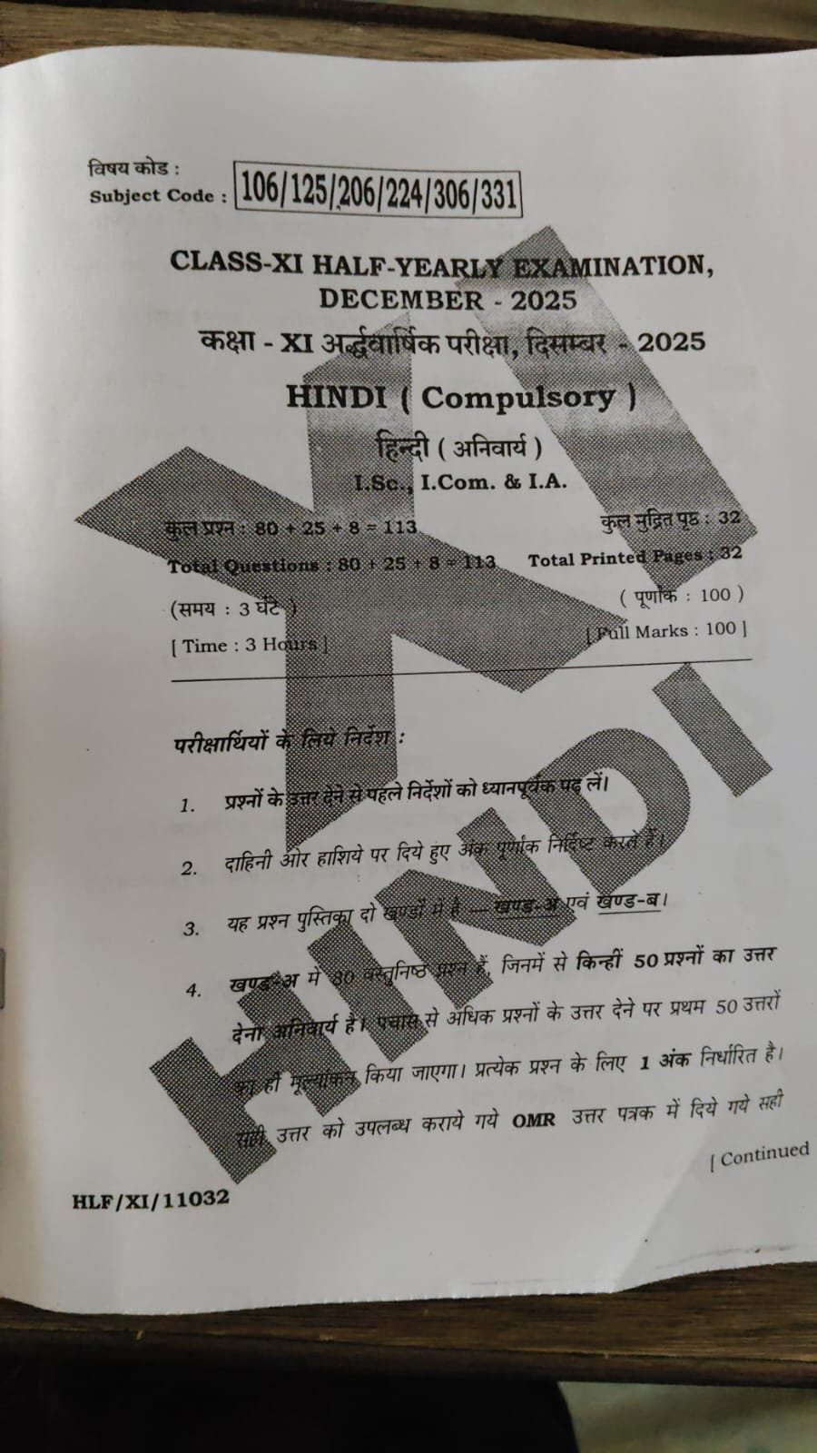 BSEB Class 11 Hindi Half Yearly Exam Question Paper 2025 – Highlights