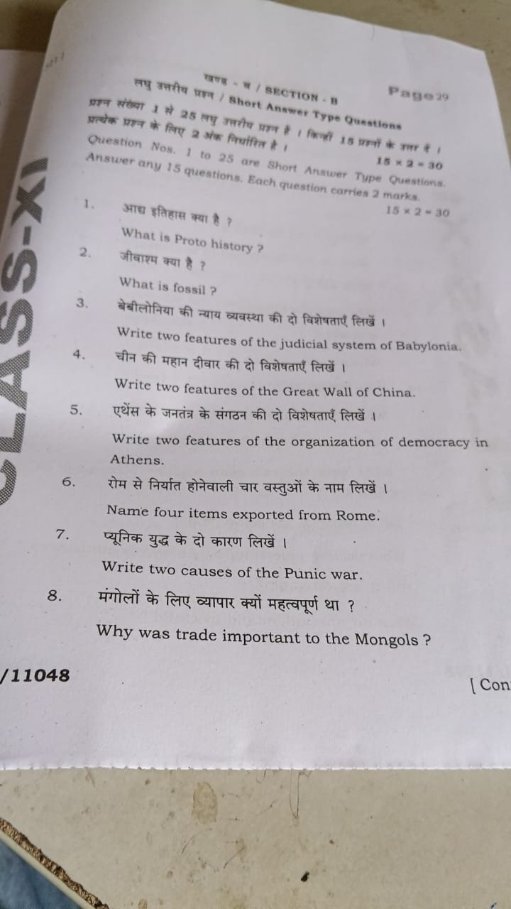 BSEB Class 11 History Half Yearly Exam Question Paper 2025 – Highlights