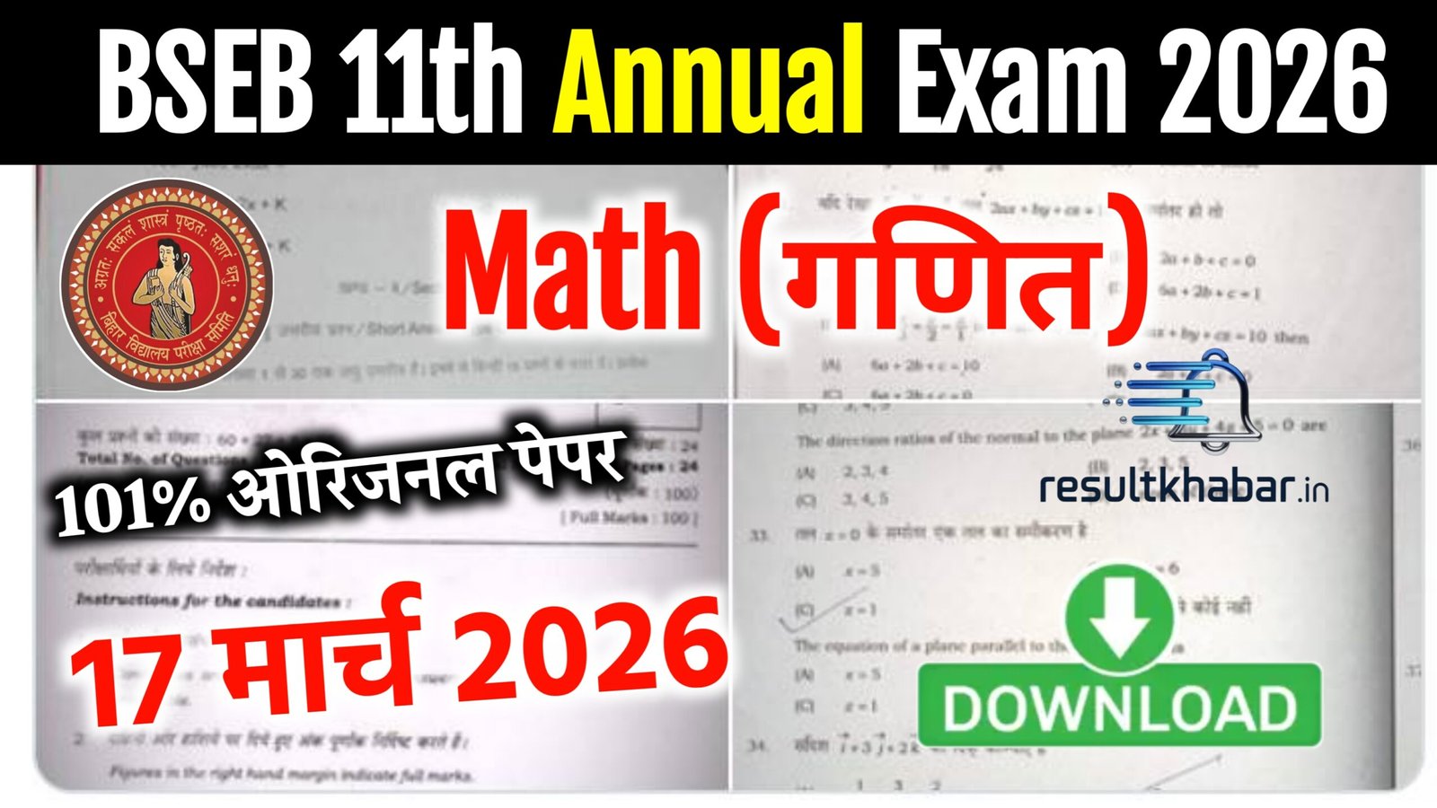 | Bihar Board Class 11 Mathematics Annual Exam Question Paper 2026 | Download Pdf |