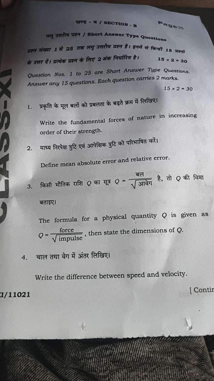 | BSEB Class 11 Physics Half Yearly Exam Question Paper 2025 | Download Pdf |