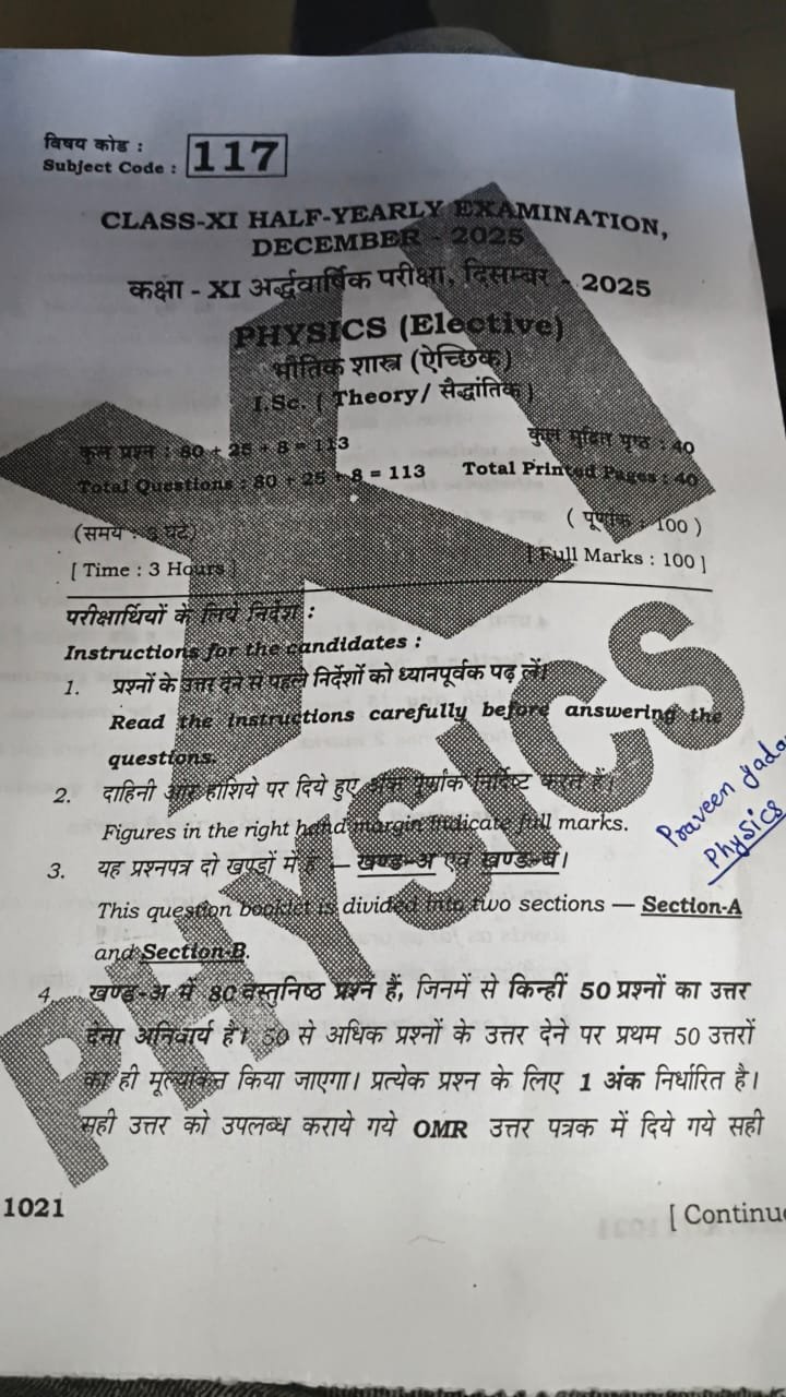 | Subject Name | Physics (भौतिकी) |