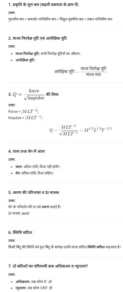 बिहार बोर्ड कक्षा 11वीं भौतिकी अर्द्धवार्षिक परीक्षा 2025 के ओरिजिनल Question Paper के 100% Correct Answer Key नीचे देख सकते हैं –