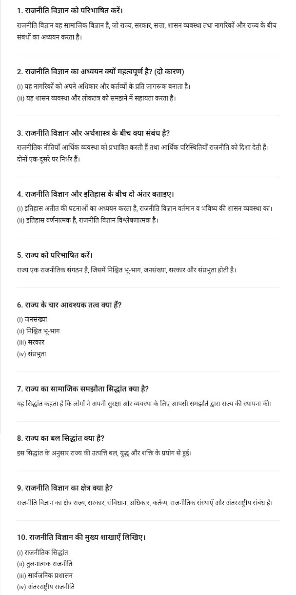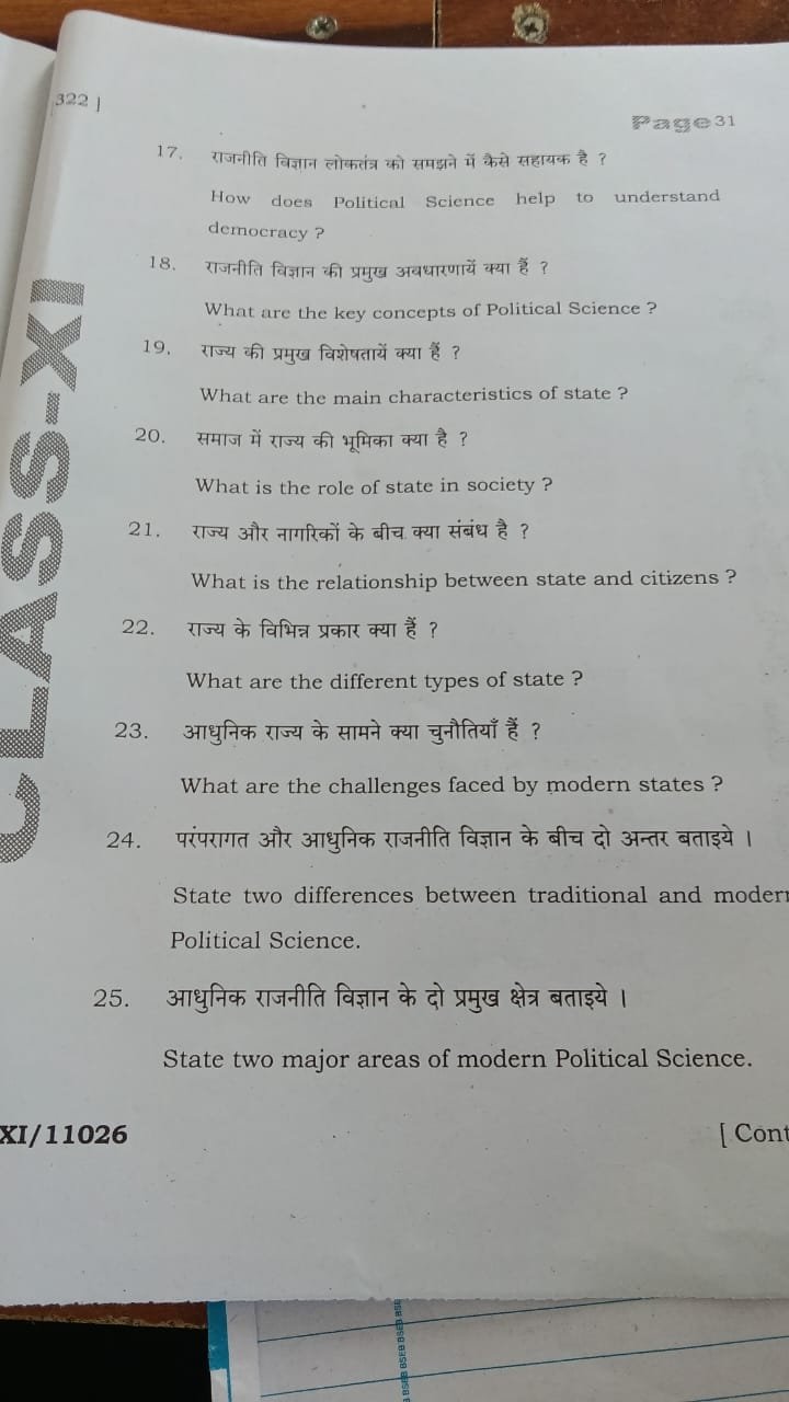 | Subject Name | Political Science (राजनीति विज्ञान) |